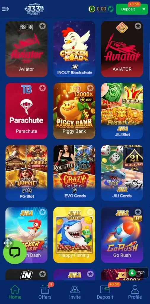 J33 Bet Game is a simple and fun online gaming app for Pakistan users. It offers many games like slots, Teen Patti, and sports games.